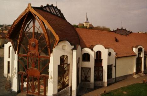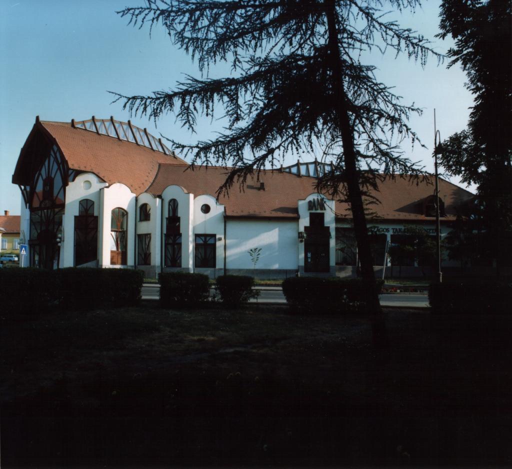 A város főterén egy saroktelken áll az épület, mely a hetvenes években épült földszintes banképületet is magába foglalja. Az aula tengelye és udvari üvegfala az egyik legfontosabb műemlék, a gótikus református templom felé fordul. A több funkciót ötvöző alaprajz koncepciója, hogy a főtér mellett egy közösségi funkcióra alkalmas fedett városi teret hoz létre az aulával, melyből nyílnak a földszinten a nagyobb terek és az emeleten az irodák és vendégszobák. A külön bejárattal rendelkező bank alapterületét kétszintes, galériás belső kialakítással növeltük. Az étterem, a totózó és a bank belsőépítészeti terveit is az épülettel együtt terveztük meg.