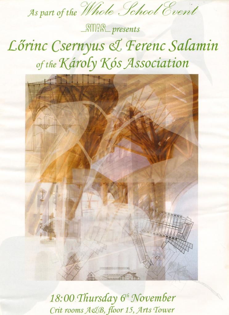 2003. november 6.-án és 7.-én Hugh Conway Morris kezdeményezésére Csernyus Lőrinc és Salamin Ferenc kétnapos gyakorlatot tartott a sheffieldi School of Architecture építészhallgatói számára. Hugh az elmúlt évben több, mint félévet töltött az Axisban és a Triskellben, mint ösztöndíjas építészhallgató. A két napos gyakorlat célja az organikus építészet megismerése illetve bemutatása volt, gyakorlatokon és előadásokon keresztül.