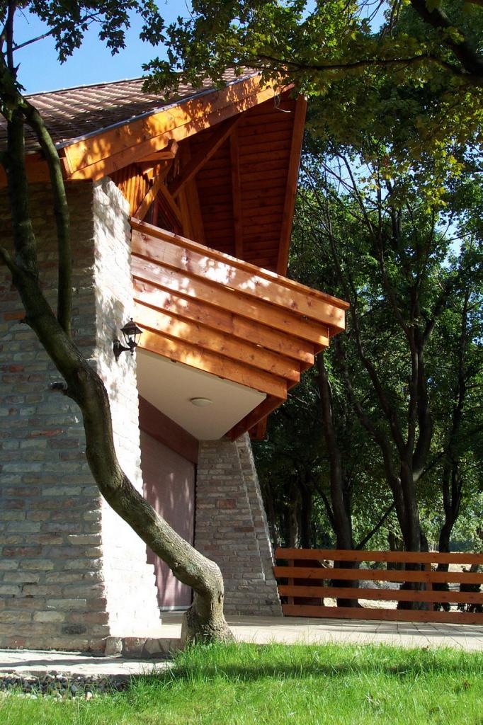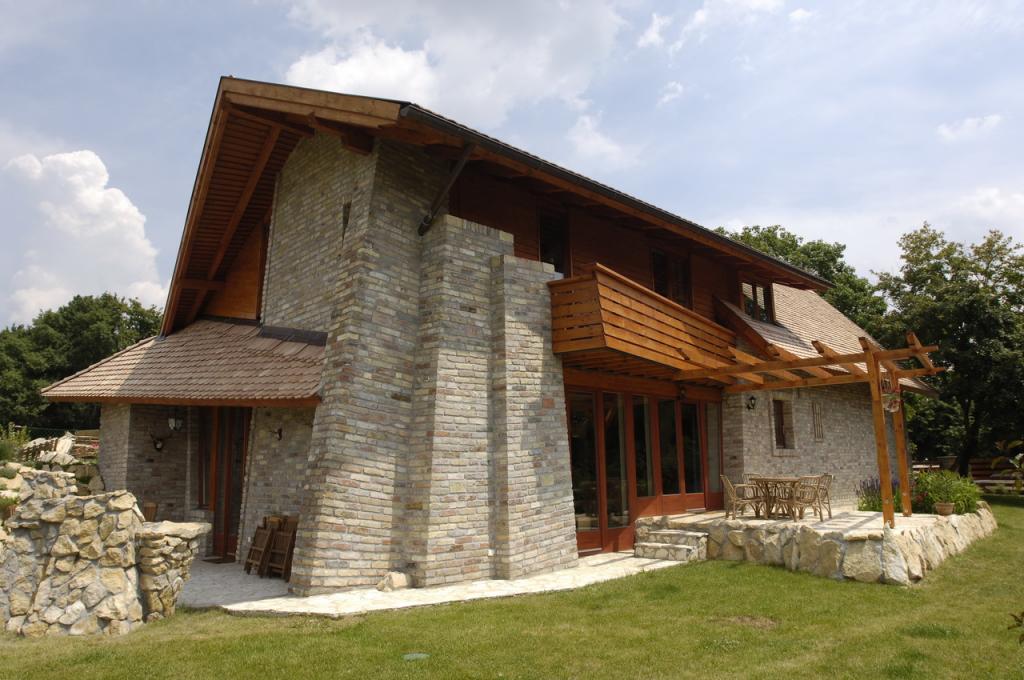 A ház tömegformálásában az egyszerűségre törekedve, és a népi hagyományokra építve az oromfalas magyar parasztház arányaiból, formavilágából indul ki. Anyaghasználatában a bontott tégla, a hódfarkú cserép, a fa nyílászárók, a faszerkezetek, a terméskő, és az épületen kívül a föld, és a megtartott ?öregecske? fák a meghatározók. A ház térszervezésében, formavilágában, és anyaghasználatában egyaránt kíván meríteni a múlt hagyományaiból, rábízni magát a táj és környezet szervező erejére, valamint korunk megkerülhetetlen elvárásaihoz ? de nem múló divatjaihoz, trendjeihez, stílusaihoz - alkalmazkodni.