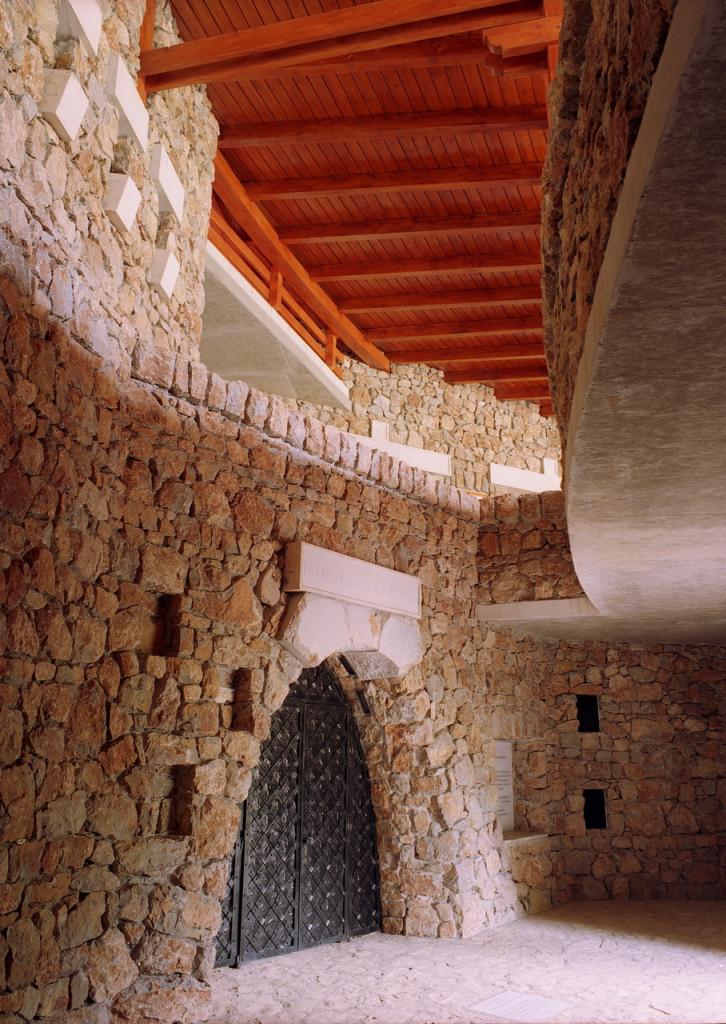Az aggteleki Baradla-cseppkőbarlang "Vörös-tói? bejáratát körülvevő táj karakterét erősen meghatározza a felszínen kialakult közel szabályos formájú, töbörszerű horpadások sorozata. A barlangbejárat is egy ilyen mélyedés aljában található. Az épület elhelyezésekor és a környezetének kialakításakor fontosnak éreztük e karakter, az épített elemekkel és a telepített növényzettel való kiemelését és hangsúlyozását. A "töbör" alját szabadon hagyva az épületet a barlangbejárat fölött helyeztük el. A horpadás parkolóval szembeni felét a rétegeket átmetsző, a közepe felé mélyülő fallal zártuk le. A lefele mutató fal legmélyebb pontján van a barlangbejárat. A nagy falfelület alján megjelenő kis nyílás, az első pillanatban átláthatóvá és egyértelművé teszi, hogy e nyíláson keresztül a hegy gyomrába juthatunk. Az épület a fal fölött két szinten helyezkedik el.