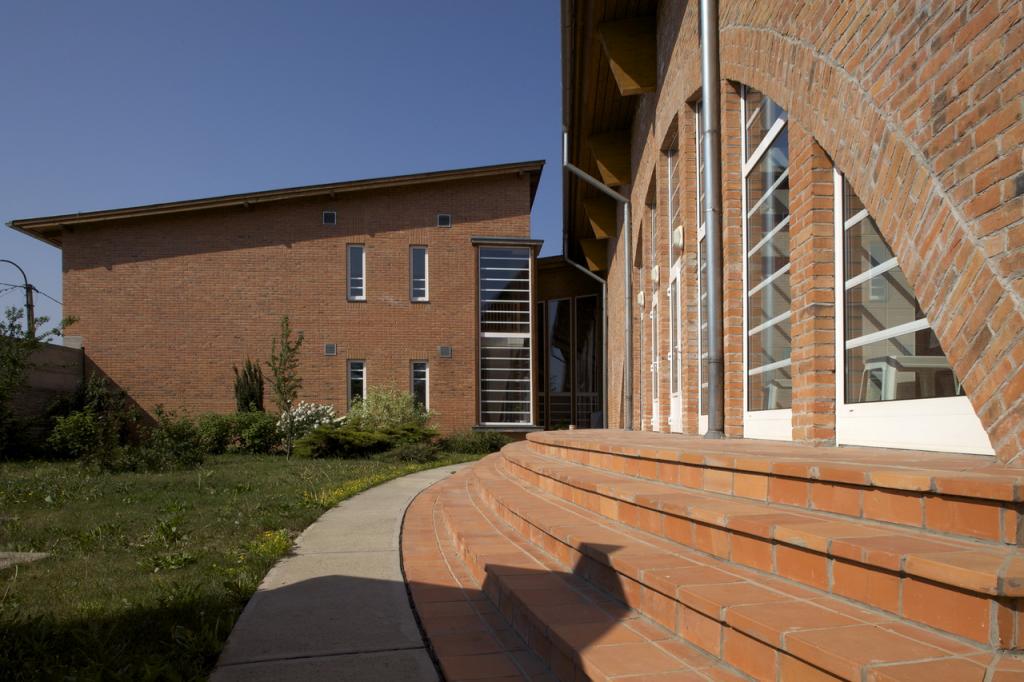 A ház két fő tömegből tevődik össze. Az egyik rész a tanuszoda, a másik épületrész pedig egy meglévő épület helyére (annak elbontásával) épült és különféle funkciókkal bír (uszodai öltözők, előcsarnok, snack bár, tantermek, nevelési tanácsadó, stb.).