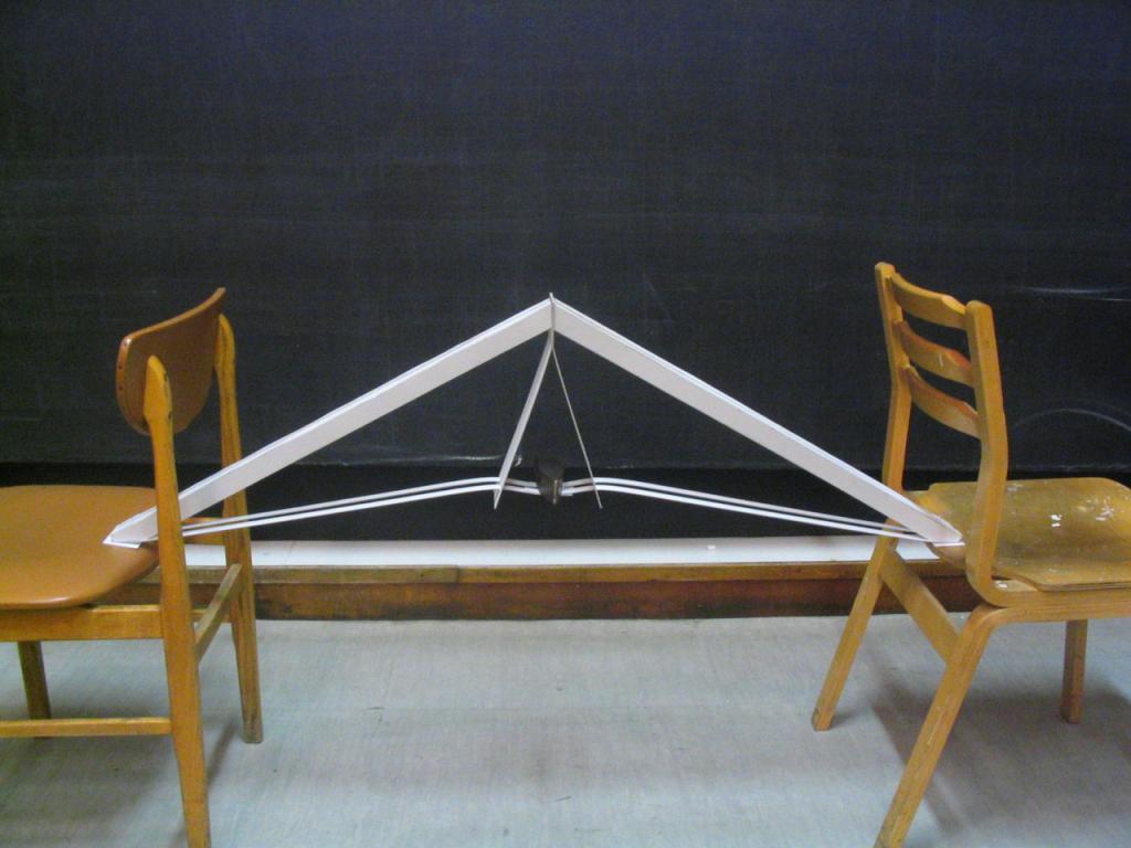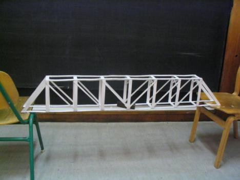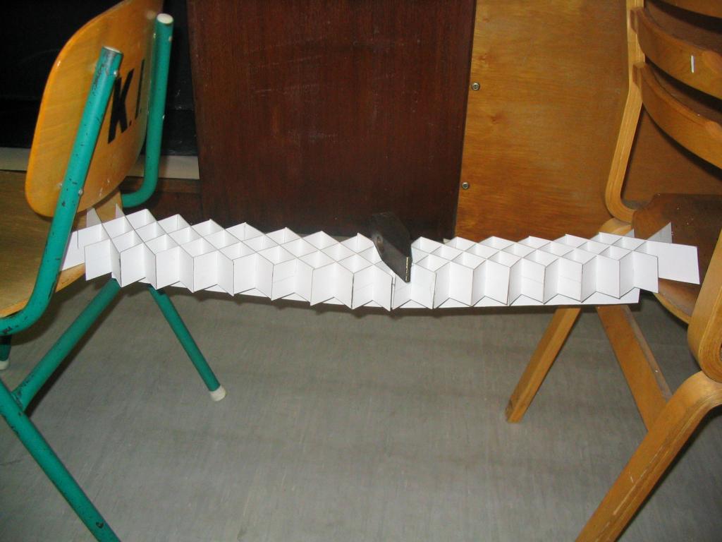 Az adott méretű, 50x70 cm-es triplex kartonból olyan szerkezetet kell készíteni, mely min. 80 cm szabad fesztávot hidal át, közepén 80 dkg. súllyal. A feladathoz a papír ragasztó használható, más segédszerkezet nem alkalmazható. Az áthidaló szerkezetnek stabilnak kell lennie, megtámasztása, merevítése nem megengedett.